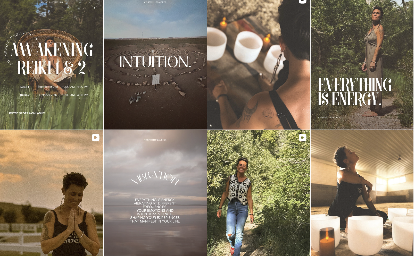 Gina has since integrated this gift into all of her offerings, creating a tiered experience that meets clients wherever they are on their healing path. Her Full Awakening Sessions weave Reiki, sound healing, and chakra channeling into a profound one-on-one experience; each energy center is read, interpreted, and communicated with clarity, making these sessions uniquely personal and transformative. For those seeking quick clarity or confirmation, her Higher Self Check-In offer focused one-question channeling—potent and accessible.
